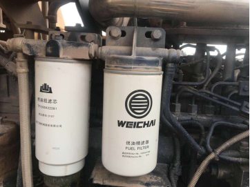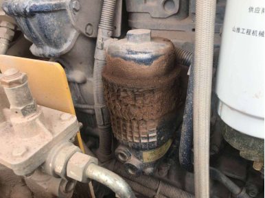 2、更換發(fā)動(dòng)機(jī)柴油濾芯(圖3),柴油濾芯是為一次性使用的,嚴(yán)禁清洗和反復(fù)使用。柴油濾芯安裝時(shí),密封圈上涂抹少量潤滑油,用手?jǐn)Q緊直到密封墊與濾芯蓋頭相接觸為止,然后再擰緊半圈到3/4圈,且勿擰太緊,導(dǎo)致濾芯及密封圈變形漏油。